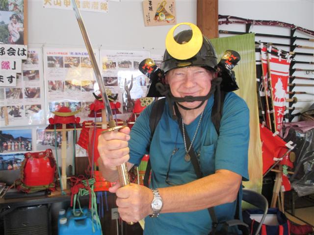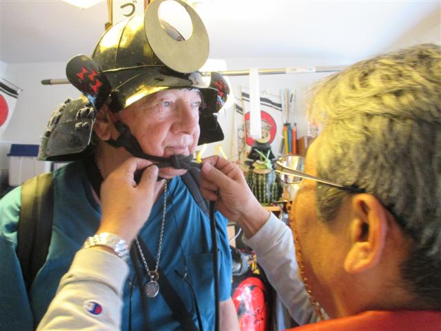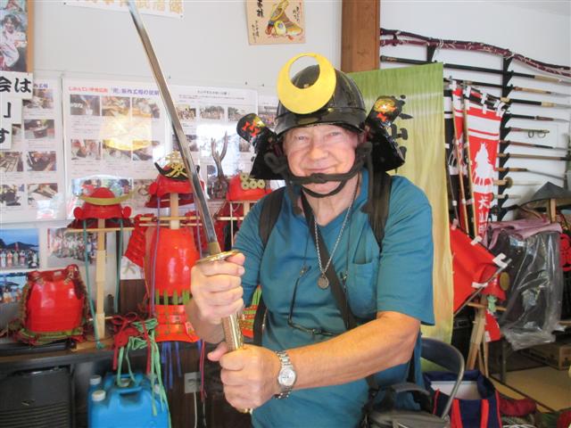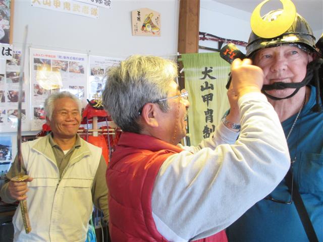「写真を撮ってもいいですか」「よくスペインから来たねぇ」「せっかくだから、冑をかぶってみるかね」「お願いします!」