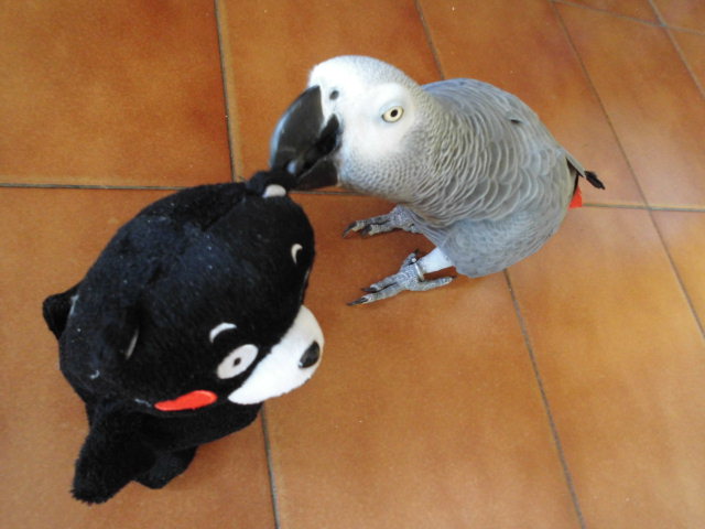 オウムもさっそく興味を示して、近づいて来る。