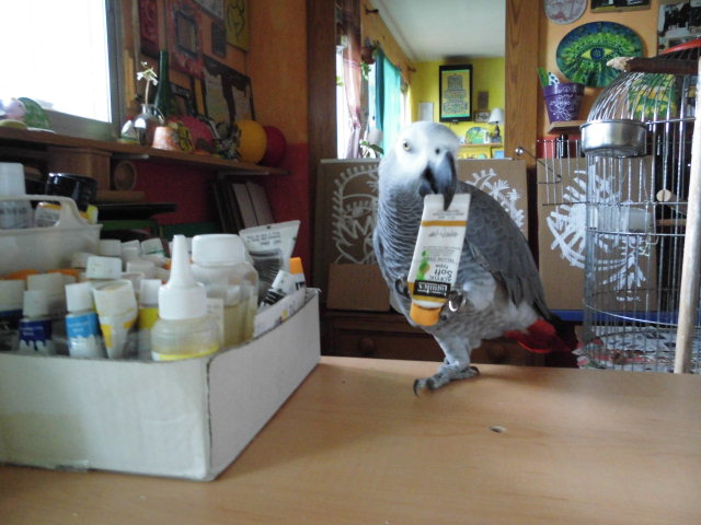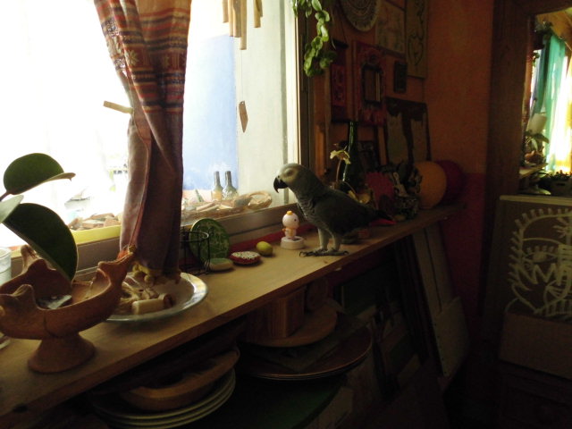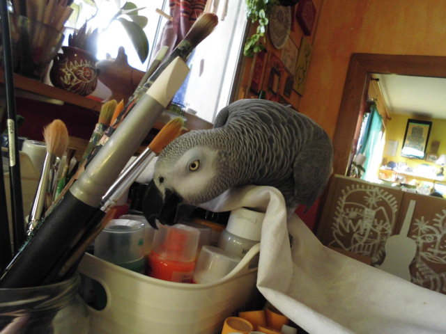 うちのリビングの一角は、私の「作業場」なのだが、最近は「オウムの遊び場」にもなってしまっている。