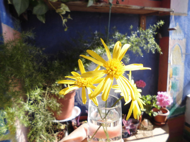 日替わりで、花の置場を変えてみる。リビング、テラス、絵の前、作品棚・・・