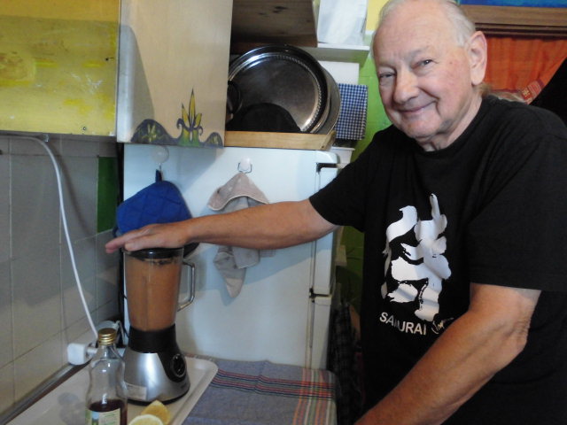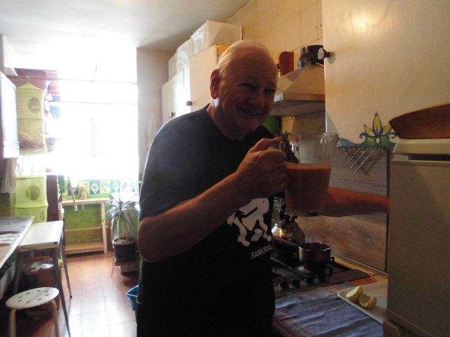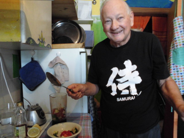 1.トマト、ピーマン、玉ねぎ、きゅうり、にんにく、水をミキサーにかける。
