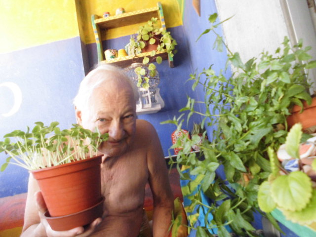 「satomiさん、クロさん、いつも心配してくれてありがとう。 ベラです。痛みどめの薬を飲んでいるので 車の運転ができません。どこにも出かけられないので テラスが僕の庭かな。植物はすばらしいです! 元気にしてくれます。 日本は36度って、本当?マラガより暑いの?」(べラ)