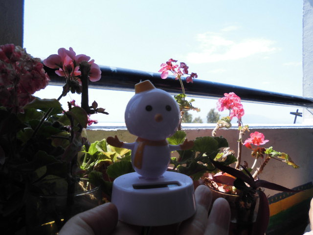 近況2015 日本のお土産で遊ぶべラ 2015-08-03 momoquimidori 2件のコメント 日本のお土産としてベラがマラガまで持ってきたこれ!何て言うのかな。太陽エネルギー人形? 今年は海にも行けずテラスから海を眺めながらほっこりくつろぐベラ。 スペインの太陽をいっぱいに受けて毎日元気にフリフリしてます。 毎日、晴天。夜の10時まで明るいマラガ。ずーっと動いてます。踊り疲れないかな(笑) 海にも、釣りにも行けず悲しいベラ。 と、思ったら・・・早く、釣りに行けるといいね。 2015-08-03 momoquimidori 2件のコメント