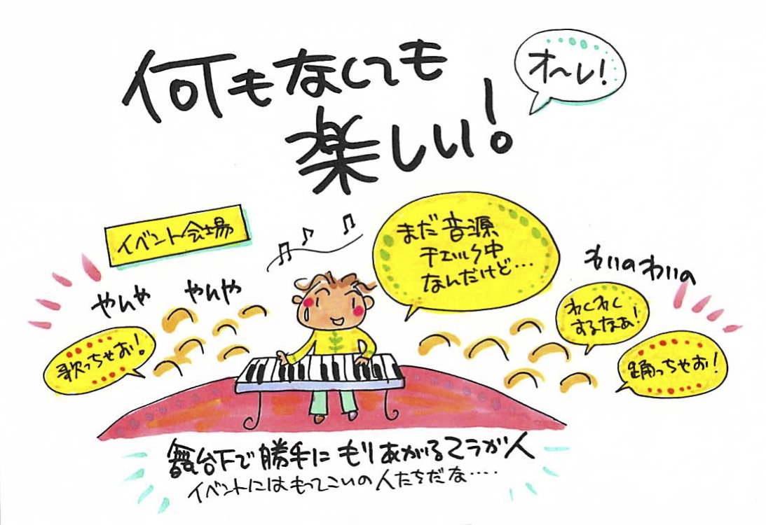 ライブが始まる1時間前から、ステージ周辺に勝手に集まって、わいわい、だらだら。しゃべったり踊ったり。