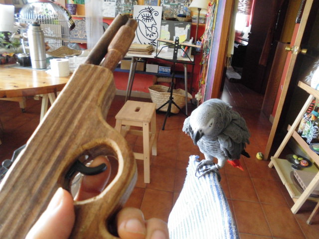 知らざれるオウムの私生活 ベラの輪ゴムピストル 2016-01-13 momoquimidori コメントする ベラが日本で見つけ大喜びして買った「輪ゴムのピストル」。 どうしようかな~と思っていたら・・・ ややや。オウムが反応。 そっかー。いつもベラがこのピストルでオウムを追い回していたんだっけ。 ま、輪ゴムなのでほとんど命中しないのだがあわてふためいて逃げ回っていた日々をどうやらオウムは忘れていないよう。 しまおうと思ったけど・・・試してみようかな(笑) さて、今週から仕事始め。「ピアノレッスン」もスタートしました。今年もよろしくお願いいたします! 2016-01-13 momoquimidori コメントする