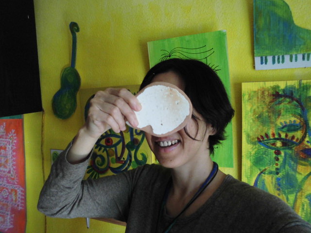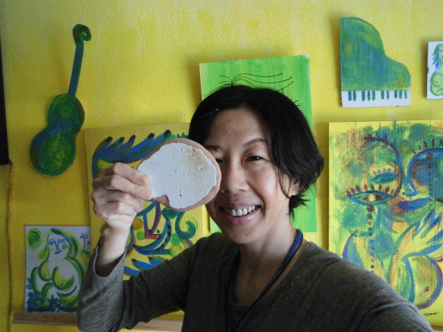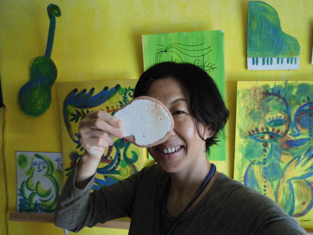 最初の授業は「色の作り方」。黄、青、紅(マゼンダー)の三色から、すべての色を作りだします。これはもう知っていたけど、改めてやると新鮮。それに油絵の具だからやはりアクリルとはちがう。さらに筆の洗い方や使い方、キャンバスの置き方まで手とり足とり。「生徒」って楽しいなぁ。