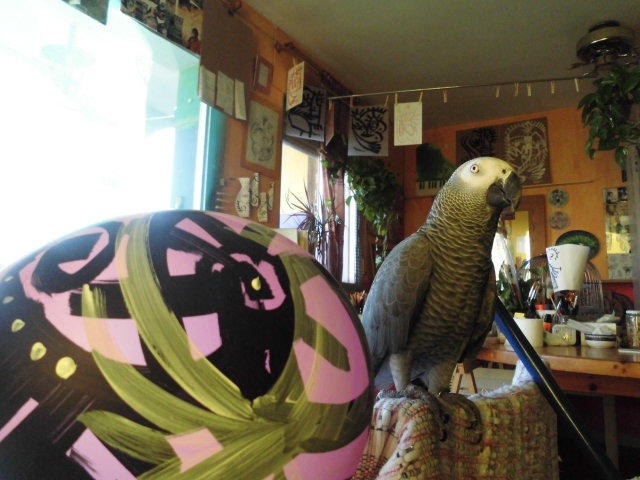 状況を見守るオウム。