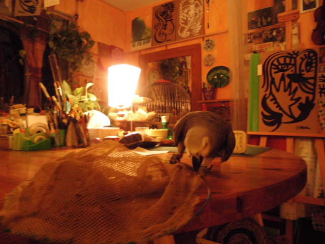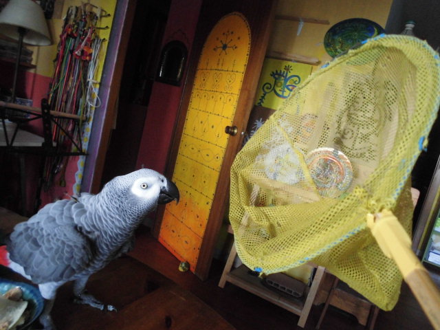 だから、うちのオウムは「網」がキライ。網を見ると「ぐるるる~っ」と、うなりながら怒る。全身の羽を立たせて。
