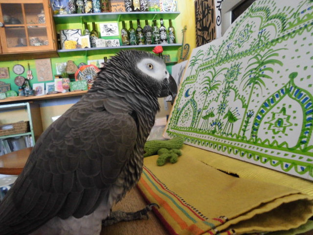 (今日の写真は「絵画鑑賞をするオウム」。見入ってる?)