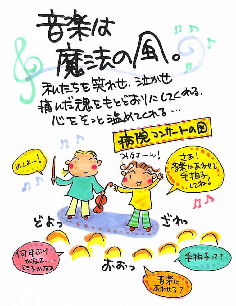 「ムシカラバナ」のスローガンは、「音楽は魔法の風」だった。そのことを、身をもって教えてくれたのは、車いすに乗ったアルツハイマーのおじいさん、おばあさんだった。