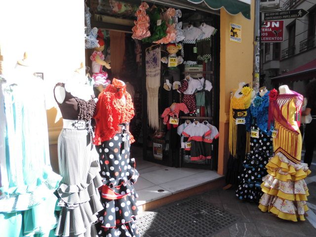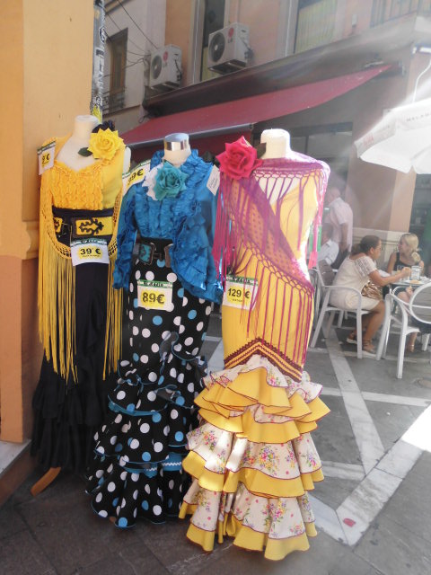 マラガの中心街には、セビジャーナスのドレスを売るお店が何軒もあります。女の子なら誰もが「絶対着たい!」と夢見ています。