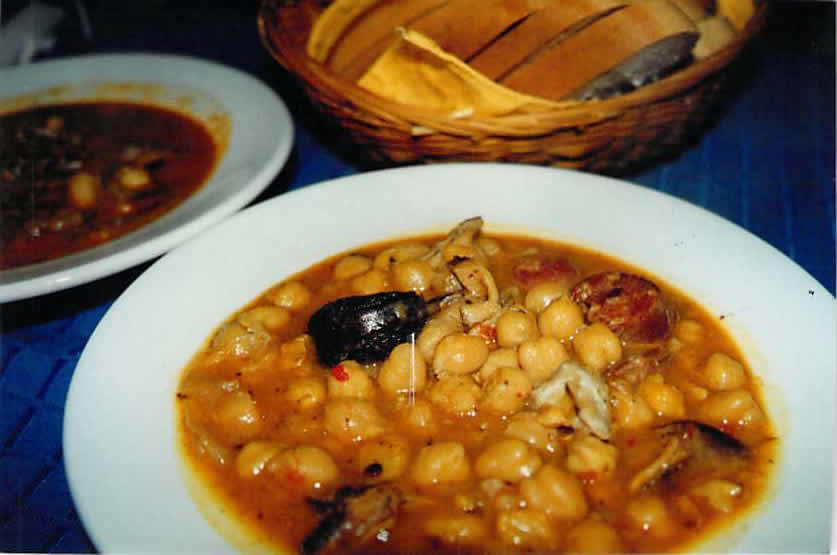 ひよこ豆、チョリソー、臓物、モルシージャ(血の黒いソーセージ)なんかが