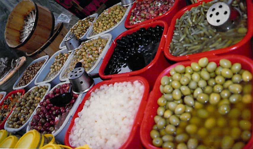 オリーブの実も、サイズ、色、味つけ・・・さまざまなものが