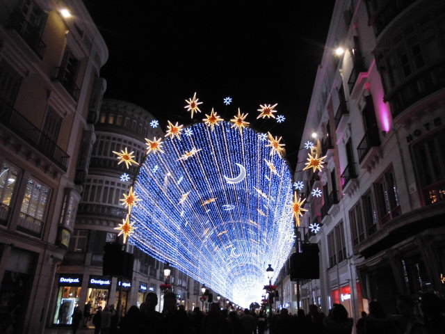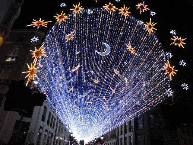 マラガの目抜き通りといえば、こちら!カジェ・ラリオス(ラリオス通り)。今年のクリスマス・イルミネーションは、こんな感じ。きれいだな~。