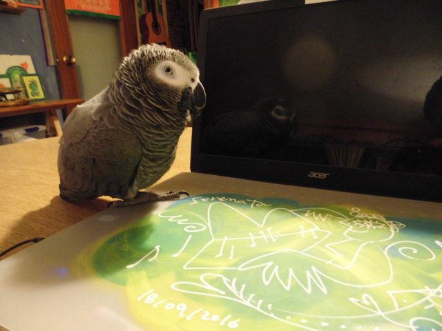 一緒に遊ぼうとするので、今は透明タッパーをオウムよけに。