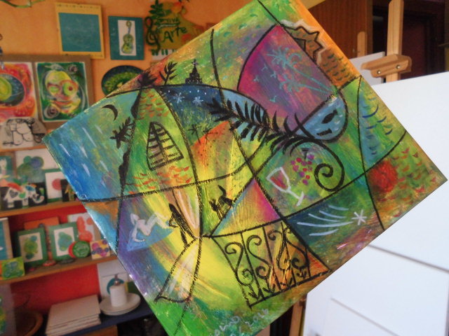 あれこれいじくっているうちに、できました!壁紙って、画面のバックの絵柄だったんだー。なんか感激。