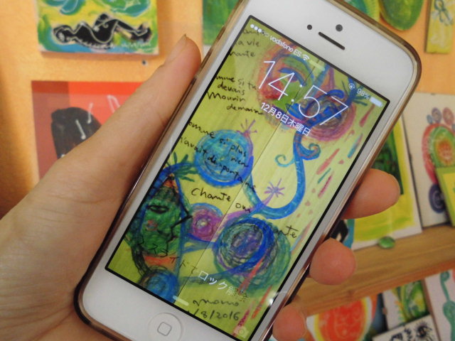 で、気をよくしてアイフォーンの壁紙設定にも挑戦。おおー、できました。
