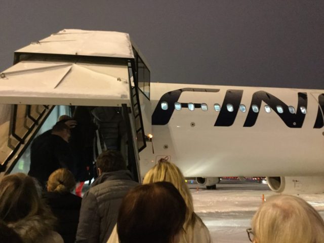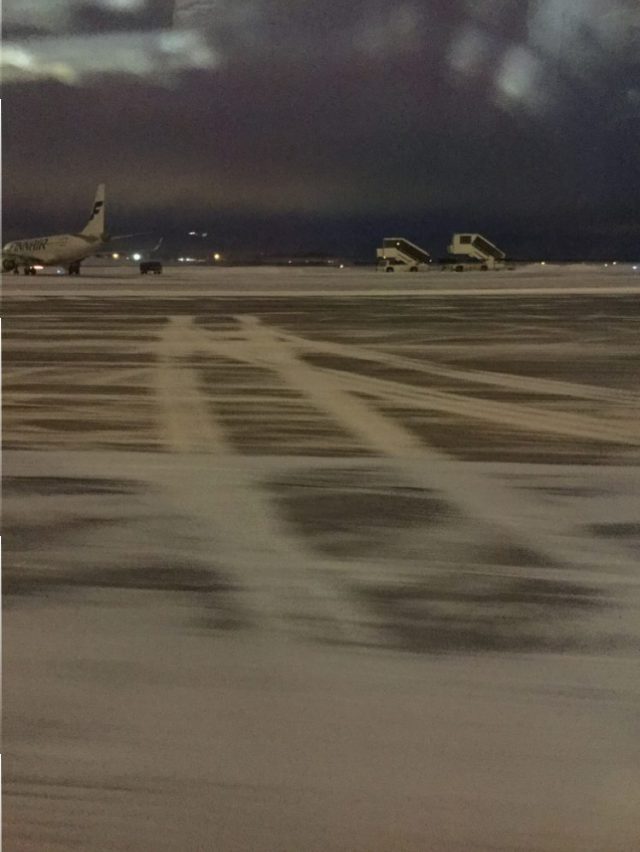 一年中、太陽に恵まれたマラガで暮らし、雪はもちろん、大雨や嵐も少ないマラガ空港に慣れていると、考えられない搭乗なのであった。が、誰も騒がないところを見ると、フィンランドではふつうなのかも。あるいはペンギン族フィンランド人には、このくらい寒さのうちに入らないのかも。