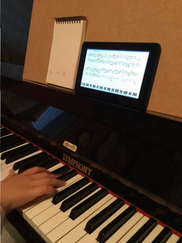と、私の手から奪い取り、みるみるまに使いこなす。画面のふちをポンポンと軽く叩くと、楽譜が戻ったり進んだりするのだ。知らなかった。