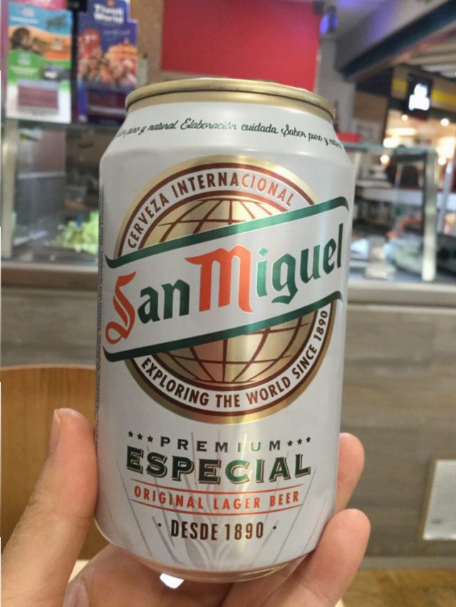 写真は、ショッピングセンター内のシャワルマ屋。「サン・ミゲル」はスペインで人気のビール。マラガの「ビクトリア」、マドリッドの「マオウ」、グラナダの「アランブラ」などいろいろあるので、旅の思い出にいろいろ試してみてくださいね。