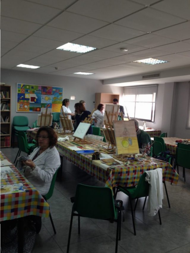 で、油絵教室のメンバーは十五人余り。毎週一回、三時間ほどこの教室に集まり、油絵を描いている。レベルはピンキリ。その間、音楽係の男性が毎週、ボレロやシャンソン、サルサなどいろいろな曲をかけてくれる。この辺が、マラガ。オーレ!
