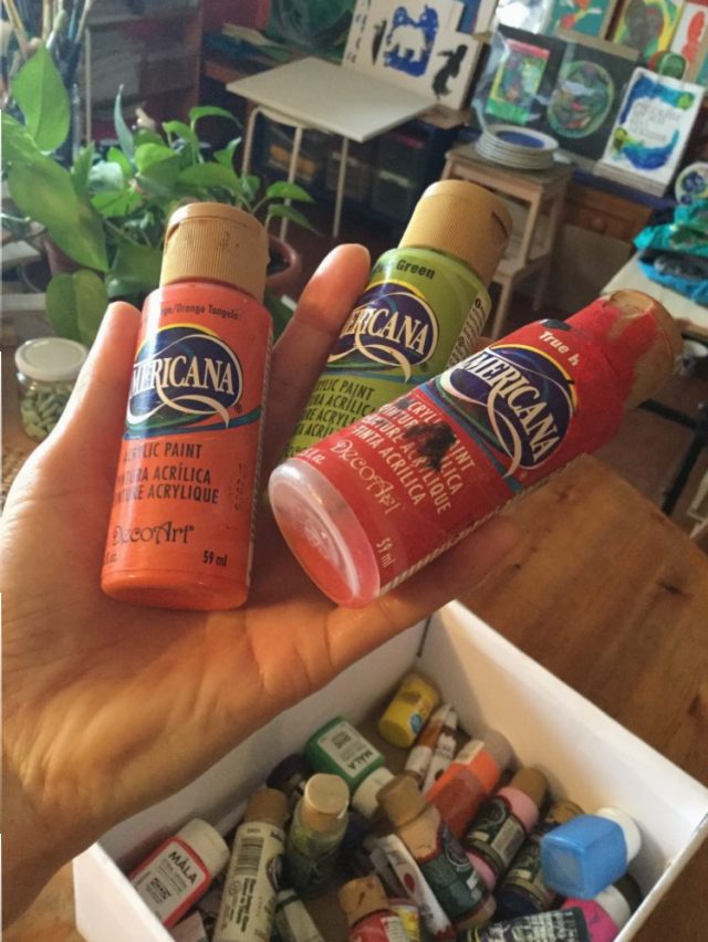 アクリル絵の具で、いろいろなものにペイントしていることを知っている仲間が、私のために「余っている絵の具および、キャンバスや板」をプレゼントしてくれた。まるで、三月から「今季の新作」を描き始めることを知っているかのよう。