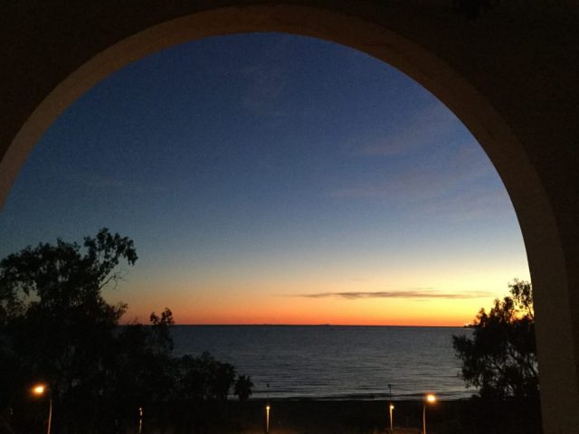 写真を撮りましたが、水平線上に「ぽちっ」とした影が見えるだけですね。すみません。このぽちっ、が、モロッコ。アフリカ大陸。オーレ!肉眼だとはっきり見えるのですが。遠くにあるものが屈折して近くに見える現象。なのらしい。