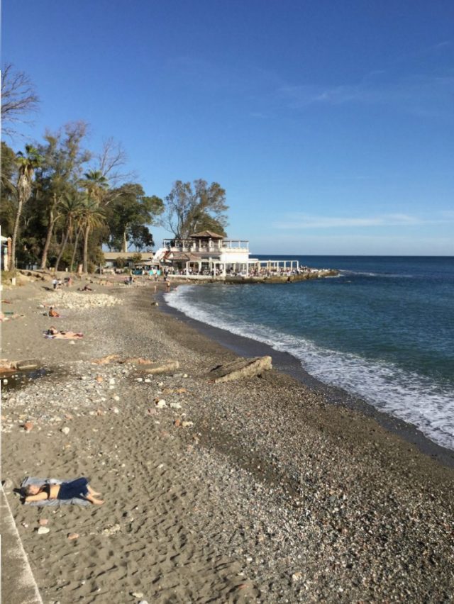 この場所は「Baño del Carmen」といい、ここにあるビーチカフェは El Barneario」といいます。マラガのセントロから11番、および3番のバスで十分。ビーチカフェの中でも雰囲気がよく、おすすめのスポット。