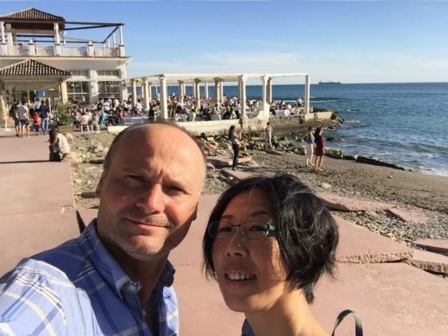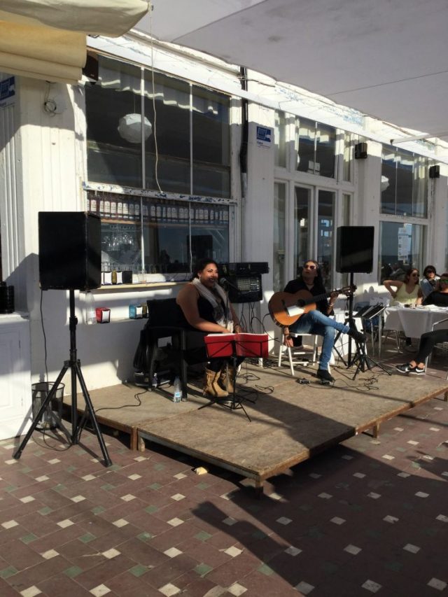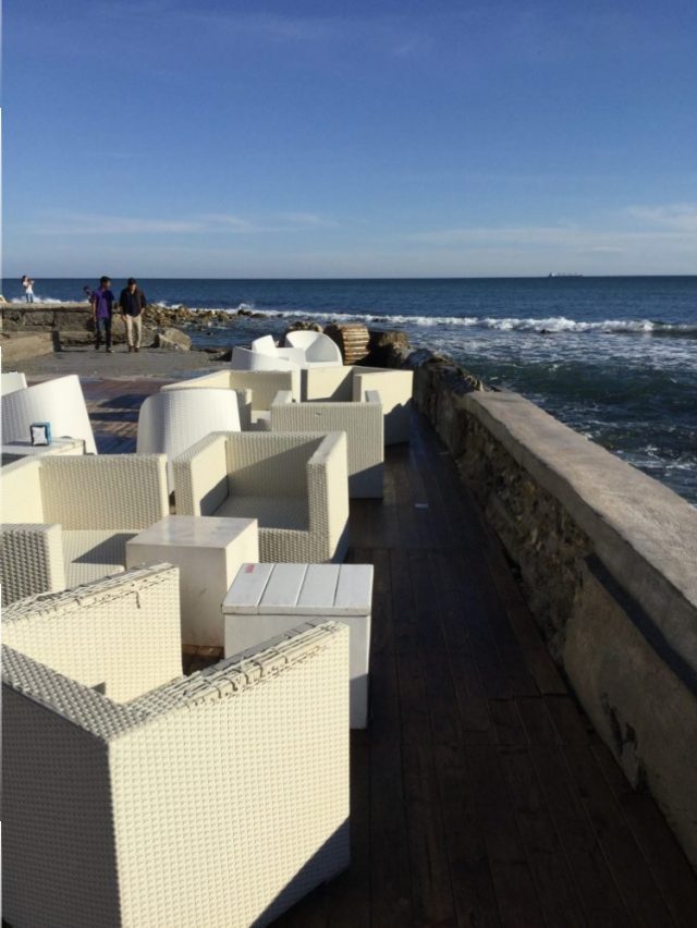 この日は、フラメンコのライブもあり!(写真参照)オーレ!地中海を眺めながらのコーヒーは一杯二ユーロ。イス席も、チェアー席もあります。私たちは海の真ん前のチェアー席(写真参照)を陣取る。