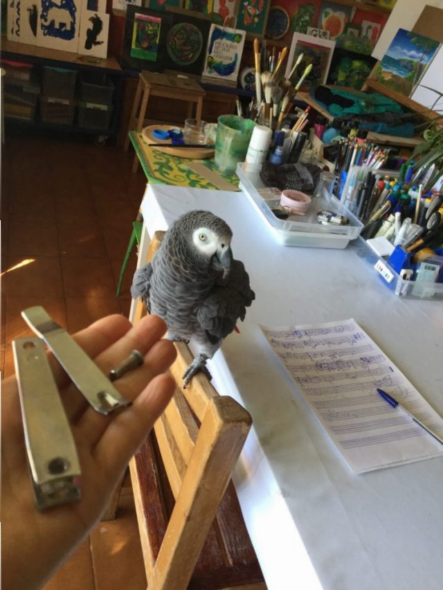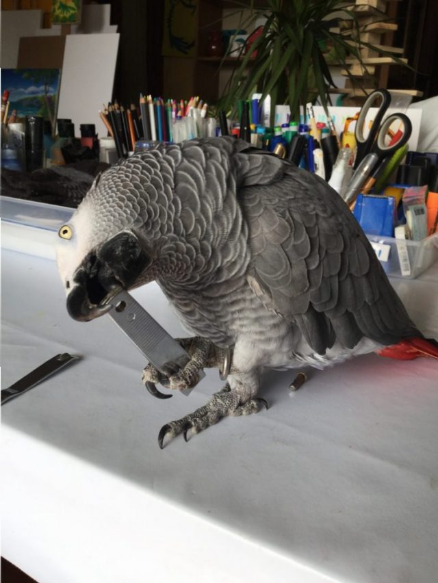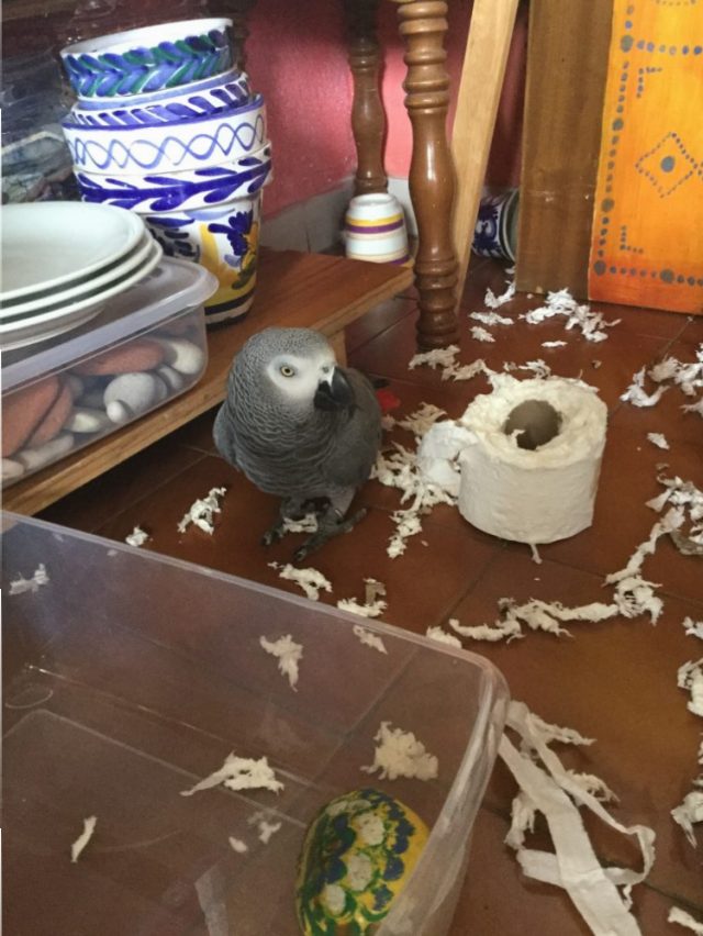 そんなこんなしている間に、オウムはやりたい放題。トイレットペーパーを食い散らかしたり(写真一枚目)、爪切りを分解したり(写真二、三枚目)、ご飯を盗み食いしたり(写真四、五枚目)。