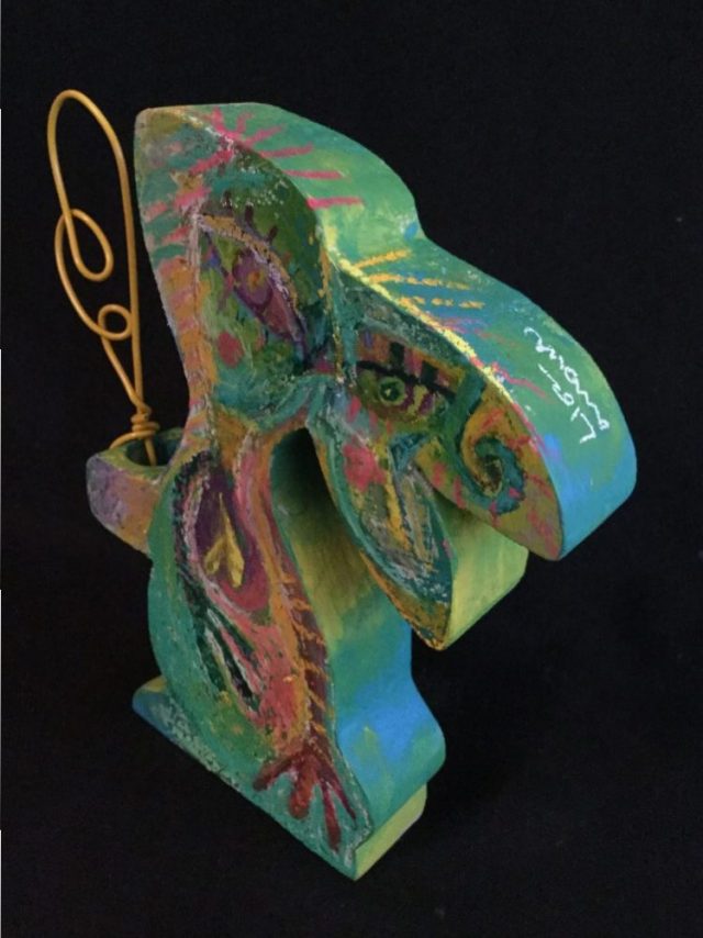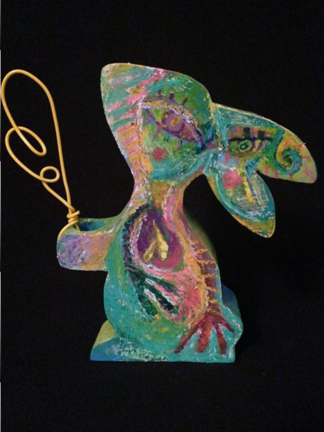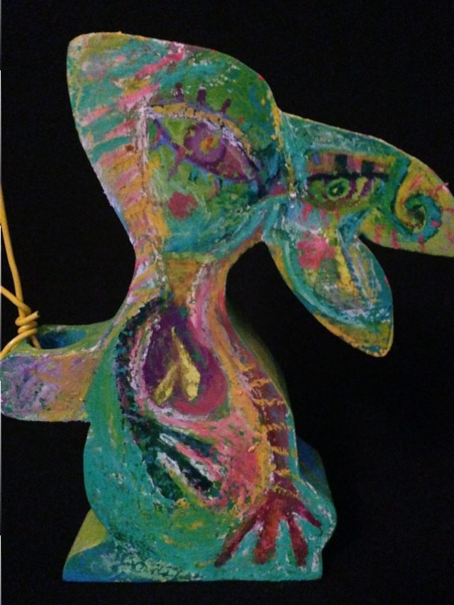 昨日の続き。「木製ウサギ」のペイント、第二段。もう一方の面を、今日は紹介します。昨日とはがらりと変わって「オイルパステル」タッチで!