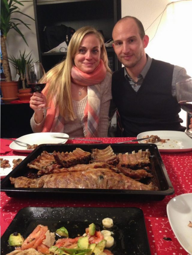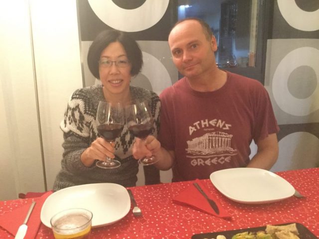 オーブンで二時間近く。私がすることといったら野菜を切ったり、お皿を並べたり。ふと気づいて鑑用植物に水をやったり。そのうちインマ&ホセ夫妻が現れた。