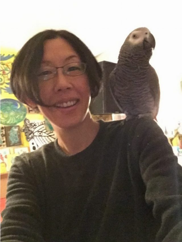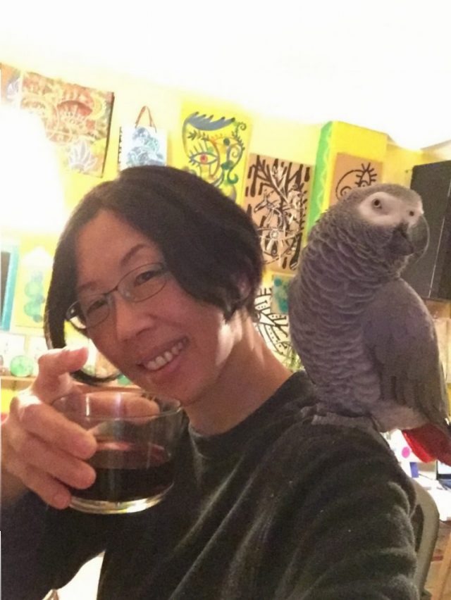 で、家に帰って夕食。鳥かごのドアを開けるや、待ちかねたオウムが飛び乗って来る(三枚目)。まずはビールで乾杯!映画に。エモーションに。食後はしばし、映画を思い出しながら、赤ワインをちびちびやってました。
