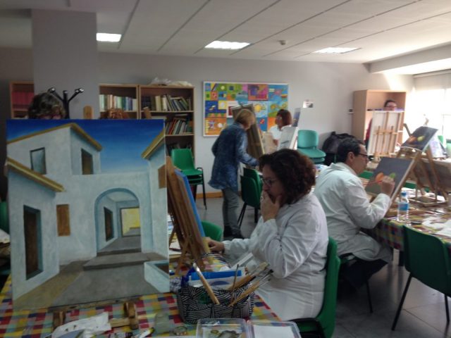 週一回、マラガ市の主催する油絵教室に通っているが、なんとこの日。油絵教室に突如現れた「料理教室」のみなさん。真っ白なコック帽&エプロン姿がまぶしい!