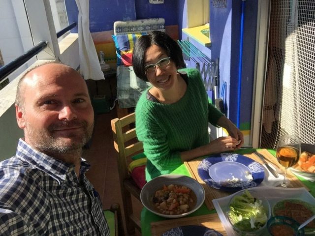 で、いきなり予定外のランチ。せっかくのお天気なので、テラスでいただきましょう。しかし、食べるものがあってよかった。最近は一人分しか作らないことも多いので(汗)。