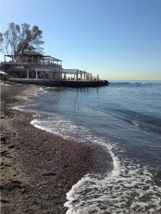 レッスンで力を使い果たし、そのまま自転車に乗って帰ることができず、ビーチカフェへ。地中海を眺めながら、至福の一杯。あぁあ、これぞマラガ。ここでは太陽と海が、体内電池をいっぱいにしてくれる。