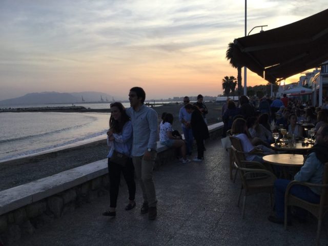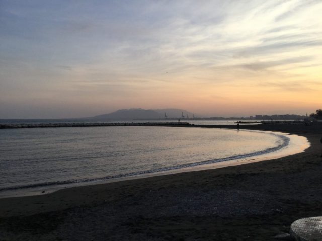 マラガの散歩道と言ったら、海岸通り「パセオマリティモ 」。オーレ!穏やかな地中海を眺めながら、夕暮れのそぞろ歩きが最高。夏は暑すぎて散策どころじゃないので(日陰がない)、春先から初夏がおすすめ。