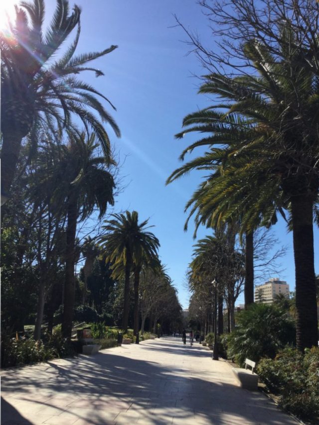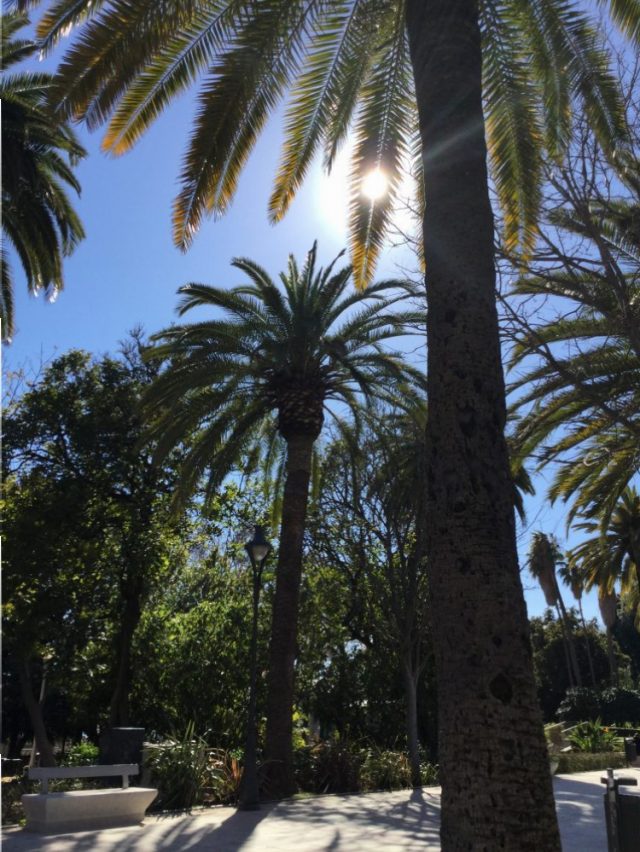 特に夏は、このヤシの樹がなければとても歩けない。ほど、マラガの太陽は強烈。小さな植物園も併設されており、ちょっとした憩いの場。まさにオアシス!これからの季節、夕暮れのぶらぶら歩きにおすすめです。