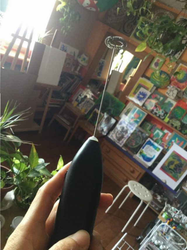 その泡立て器、日本にいた時は持ってました。ミルクが豪華になりますよね。