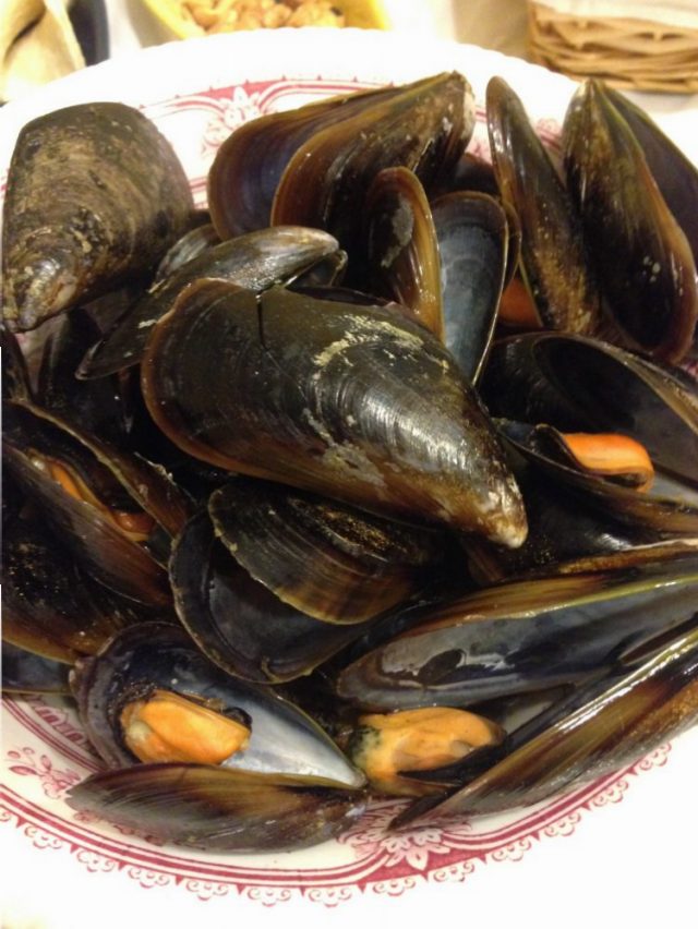 写真をご覧下さい。お皿いっぱに盛られたムール貝。これが一人分(笑)。これぞ、ムール貝ディナー。ビールで乾杯!
