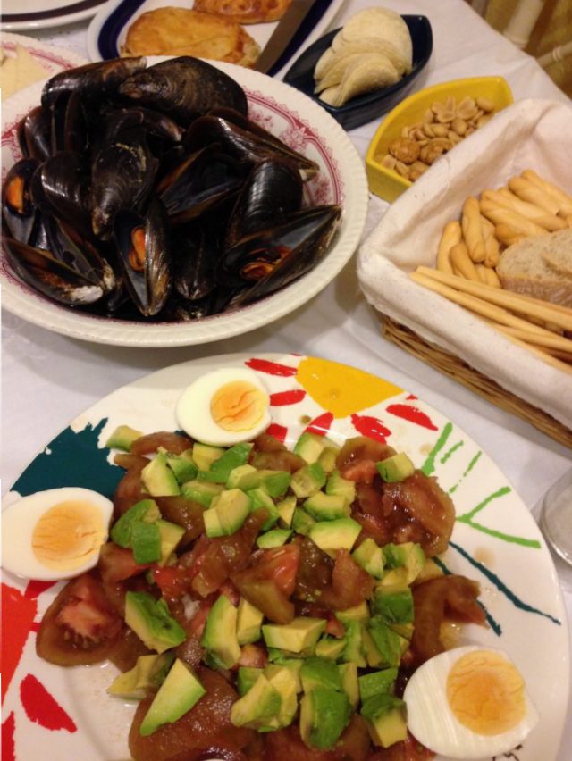 友人のカルメン宅で、行われた夕食会。この日のメイン食材はすばり「ムール貝」。マラガでは、ムール貝は安い食材なので、思いっきり食べることができます。
