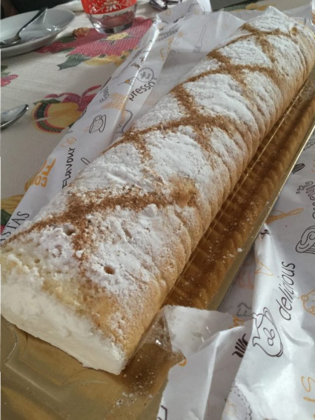 デザートはこちら!「ブラソ・デ・ヒタノ(ジプシーの腕)」という生のついた、ロールケーキ(写真二枚目)。手作りだから、おいしいー(涙)。