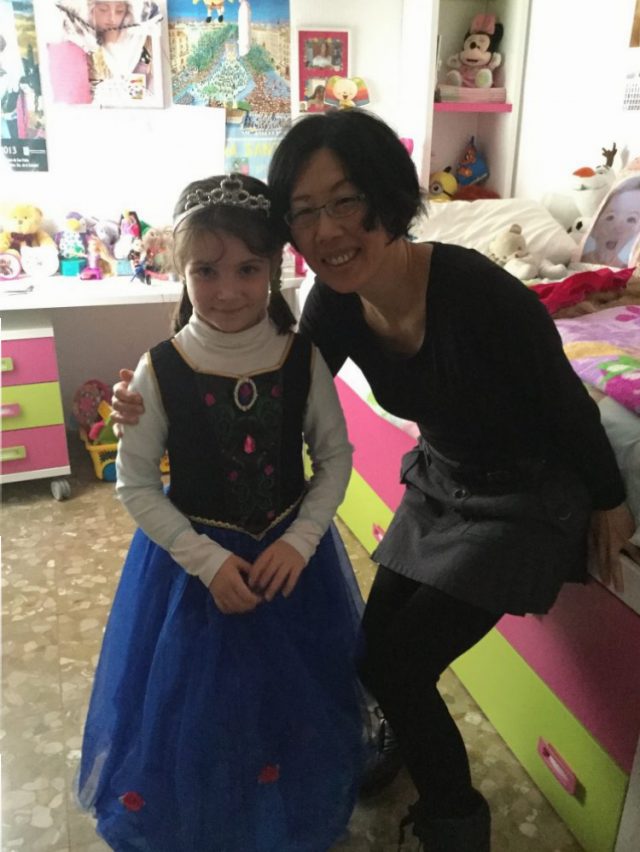 娘さんのイレーネちゃんは、この日はお姫様の格好でした(写真三枚目)。かわいいっ。スペインの子供たちは目が大きくてまつげが長く、自然な表情がとてもフォトジェニック。すてきなお部屋に住んでるね。
