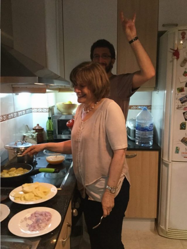 ルイス一家を訪ねてバルセロナへ。今回は四日間の滞在の予定。まずは、ウイスキーで乾杯。スペインオムレツ「トルティージャ」をみんなで作る(写真二~六枚目)