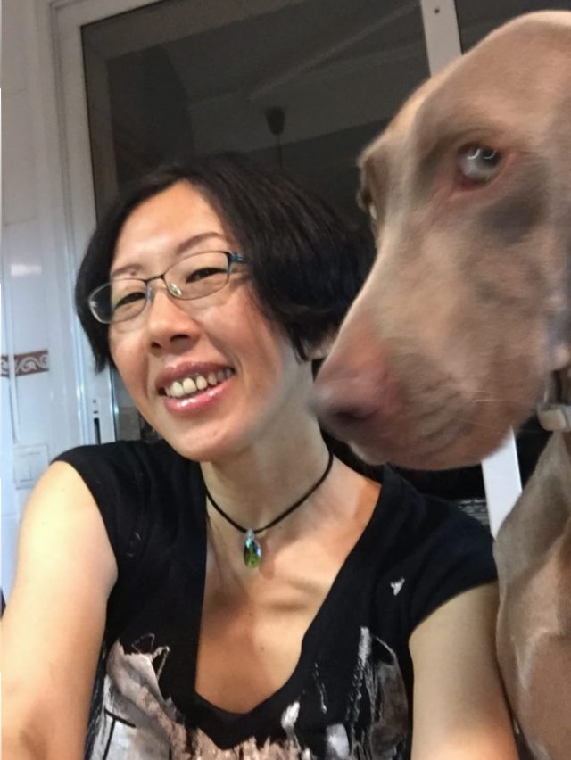 ワイマラナー(わんちゃん)ですね!!!!めっちゃめちゃ可愛い! スペインの家族 みていていいなぁと思うことが多々あります。実際の家族でなくても、人類みな家族!みたいな温かさを感じさせてもらえました。いい笑顔です!