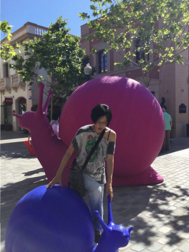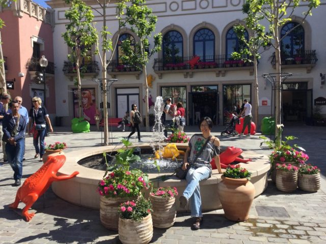 今日の写真はすべて「La Roca Village」敷地内。お店はもちろん、カフェテリア、花壇、噴水、アート作品など、あちこちに置かれていて、歩くのが楽しい~。