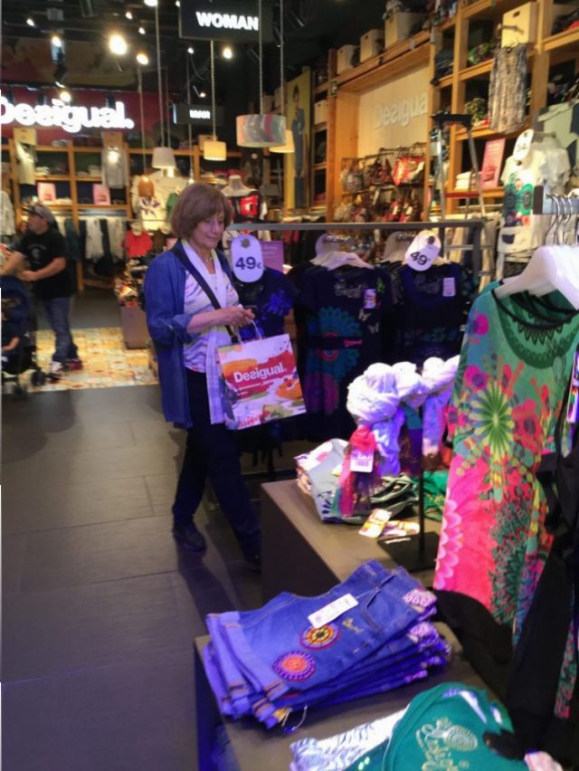 マリは、私の大好きな「desigual」のお店に入って行った。写真四枚目をご覧ください。手前右にある「緑&ピンク」の服。