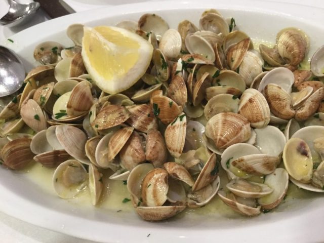 で、運ばれて来る白と赤。高そっ。至福のひと時~。これだけ食べて、割り勘して一人20ユーロ。大満足。ま、ワイン代は入ってないとしても。