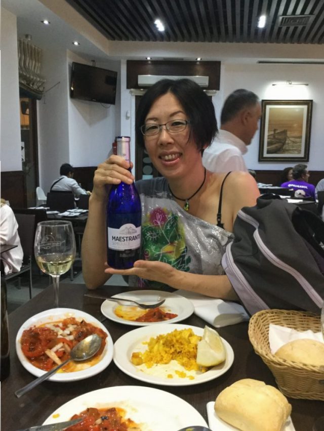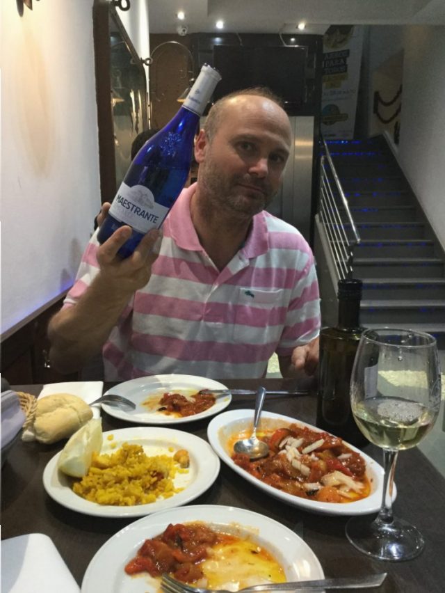 Los Mellisos のお得キャンペーン伝説は本当でした。味もサイズもそのままにして、お値段だけ下がってます。この状況にすっかり満足して、白ワインをボトルで注文。11ユーロ。