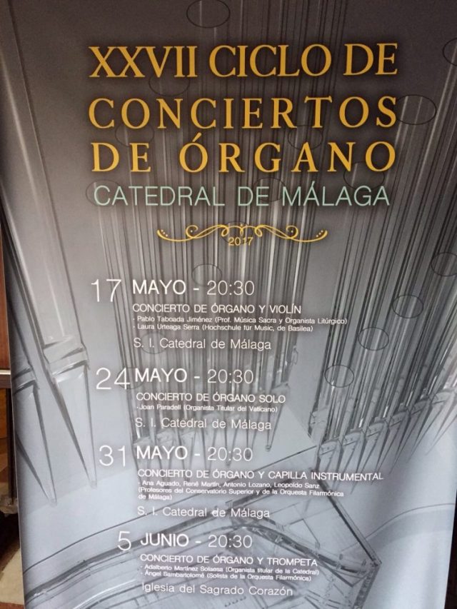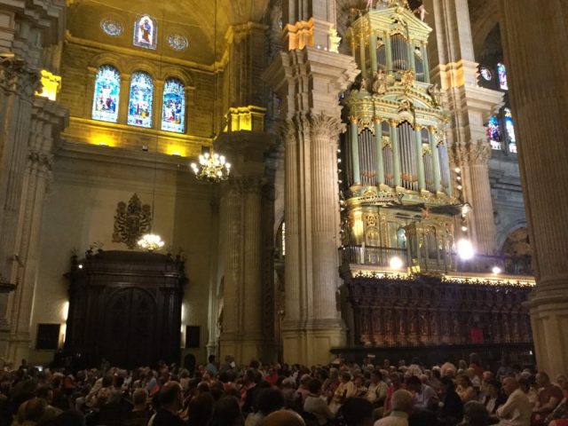 マラガのセントロにある「カテドラル(大聖堂)」では、時々コンサートが行われています。この日は、オルガンコンサート(写真一枚目)。